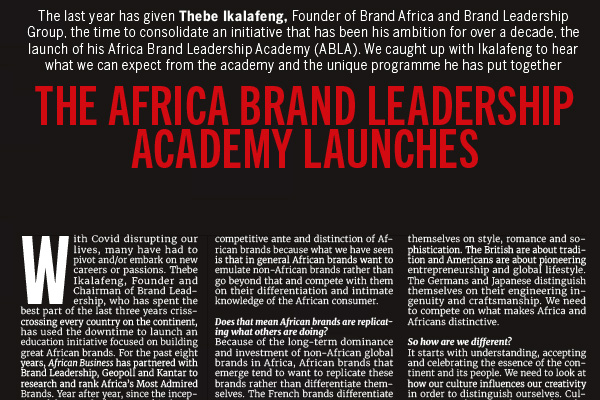The last year has given Thebe Ikalafeng, Founder of Brand Africa and Brand Leadership Group, the time to consolidate an initiative that has been his ambition for over a decade, the launch of his Africa Brand Leadership Academy (ABLA).